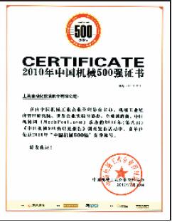 由中國(guó)機(jī)械工業(yè)企業(yè)管理協(xié)會(huì)主辦,機(jī)械工業(yè)經(jīng)濟(jì)管理研究院、世界企業(yè)實(shí)驗(yàn)室協(xié)辦,全球制造商、中國(guó)機(jī)械網(wǎng)(MechPost.com)承辦的2010年第八屆籃中國(guó)機(jī)械500強(qiáng)研究報(bào)都調(diào)查發(fā)布活動(dòng)中,公司榮獲2010年中國(guó)機(jī)械500強(qiáng)”榮譽(yù)稱號(hào)。