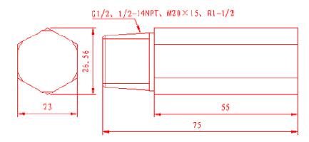 表示其安裝螺紋為1/2-14NTP美制錐管螺紋。工作電壓為30V/DC或21 V/AC普通室外型保護(hù)器。