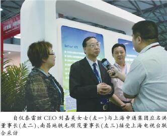 本次展會期間,上海電氣(集團)總公司副總裁、自儀股份董事長、TST(自儀泰雷茲)懂事長徐子瑛女士親自接待了南昌地鐵毛順茂董事長一行,并進行了卓有成效的溝通與交流。各級領(lǐng)導(dǎo)、眾多客戶以及業(yè)內(nèi)專家等紛紛參觀了公司展臺。上海申通集團應(yīng)名洪董事長、中國軌道交通協(xié)會包敘定會長、中國工程院劉建航院士等貴賓親臨TST展臺指導(dǎo)、交流,自儀泰雷茲CEO劉嘉美女士、上海申通集團應(yīng)董事長、南昌地鐵集團毛董事長在TST展臺前接受了上海電視臺新聞頻道聯(lián)合采訪,公司CTO Mario先生接受了上海電視臺外語頻道專訪。包括解放日報、新民晚報等在內(nèi)的多家媒體對公司進行了多種形式的報道。